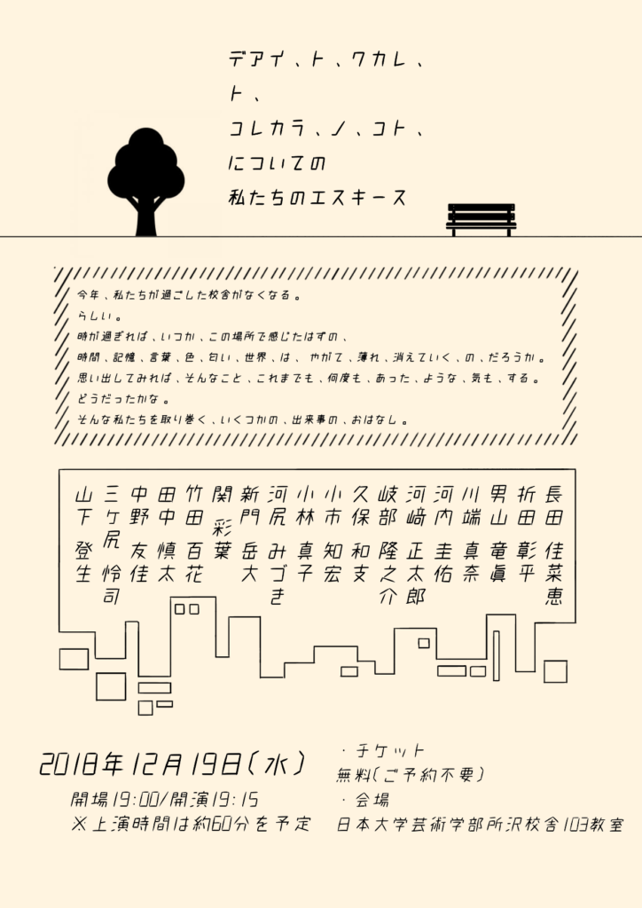 2018.12.19 デザイン 『デアイ、ト、ワカレ、ト、コレカラ、ノ、コト、についての私たちの エスキース』/ フライヤーデザイン、当日パンフレットデザイン 『デアイ、ト、ワカレ、ト、コレカラ、ノ、コト、についての私たちの エスキース』/ 当日パンフレットデザイン、フライヤーデザイン
