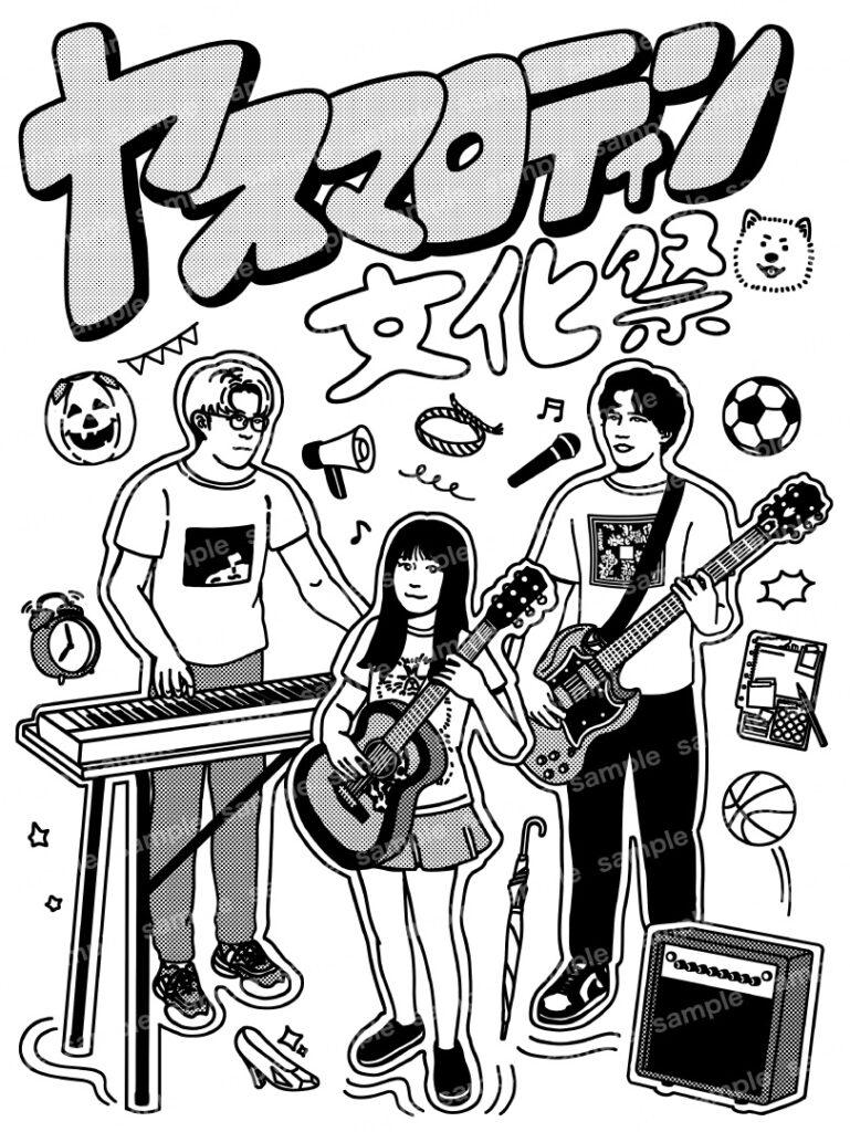2025.02.09 イラスト Artistspoken ナイチンゲールダンス×カンナギマロ『ヤスマロティン』 ナイチンゲールダンスさんとカンナギマロさんのラジオ番組『ヤスマロティン』のクラスTシャツイラストを描かせて頂きました。ラジオに出てくるワードをつめこんでおります。