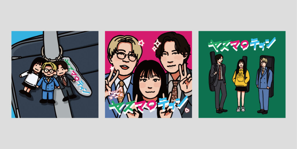 2025.02.09 イラスト Artistspoken ナイチンゲールダンス×カンナギマロ『ヤスマロティン』 『ヤスマロティン文化祭』のステッカーイラストを描かせて頂きました!軽音部をイメージした3種になっております。
